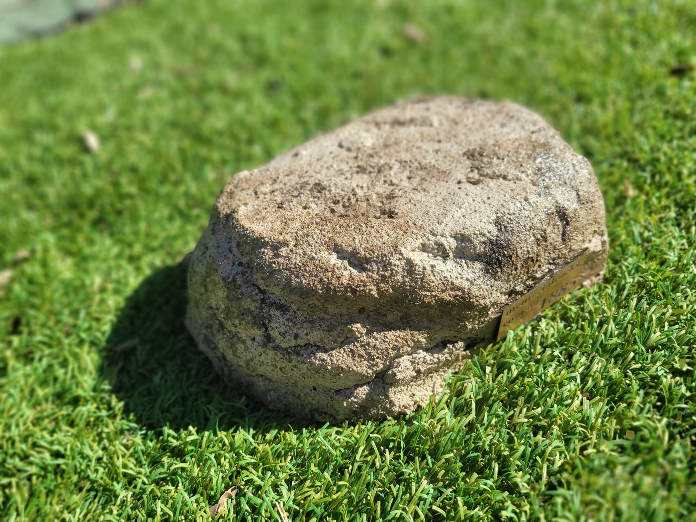 Memorial Rock Urns are a loving practical alternative for the safe keeping of a loved one's ashes. This Memorial Rock Urn has a small internal sealed container for partial ash interment. This Partial Ash Urn Memorial rock has an incorporated flat space for a 100 mm x 75mm x4.5mm industry standard bronze plaque. PLAQUE SOLD SEPARATELY Proudly...