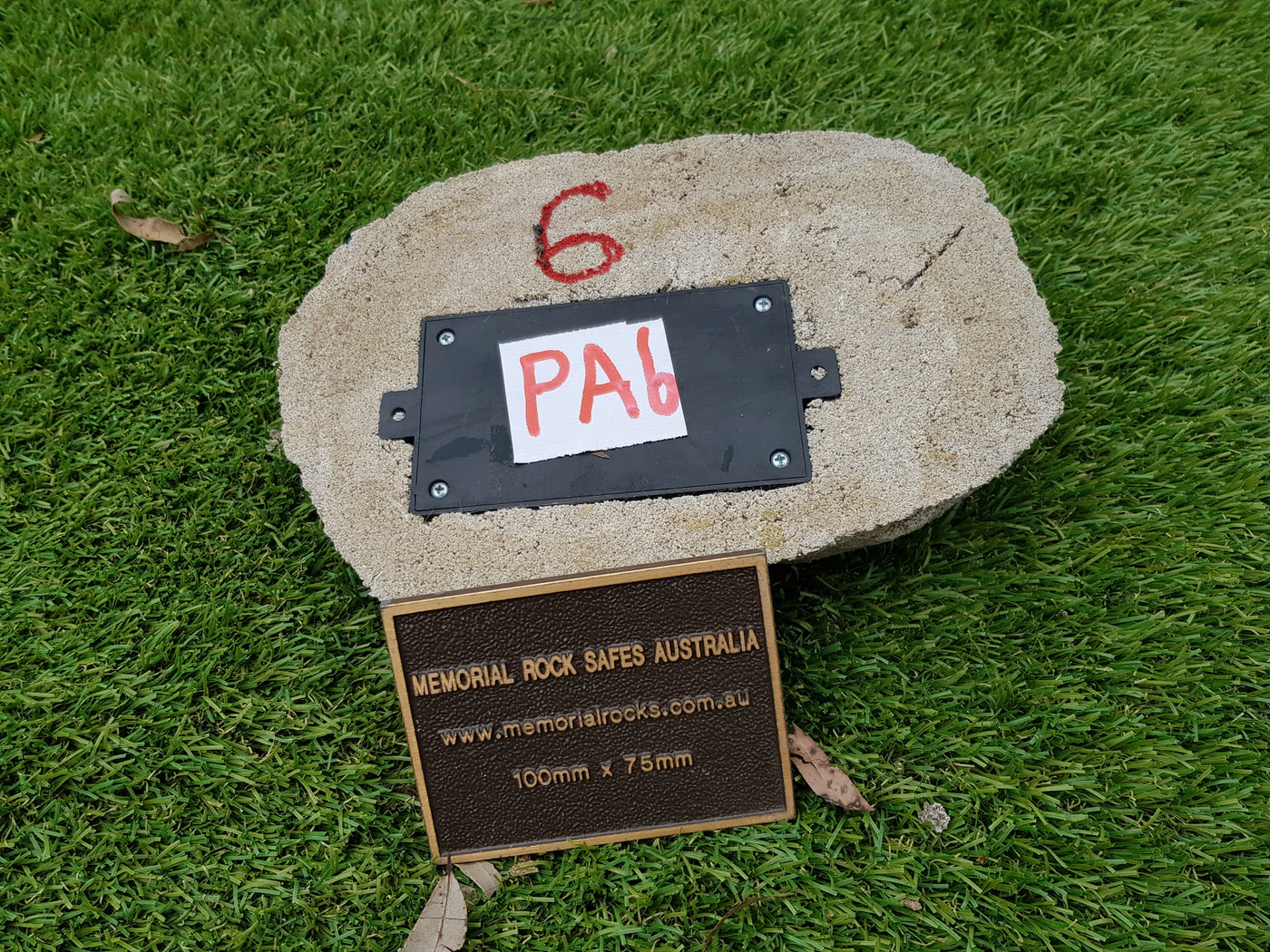 Memorial Rock Urns are a loving practical alternative for the safe keeping of a loved one's ashes. This Memorial Rock Urn has a small internal sealed container for partial ash interment. This Partial Ash Urn Memorial rock has an incorporated flat space for a 100 mm x 75mm x4.5mm industry standard bronze plaque. PLAQUE SOLD SEPARATELY Proudly...