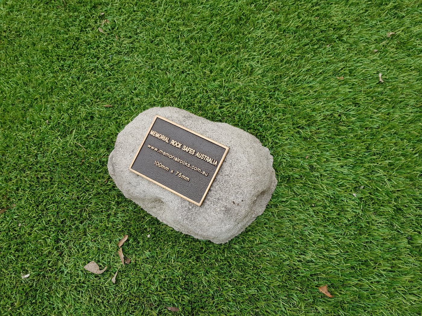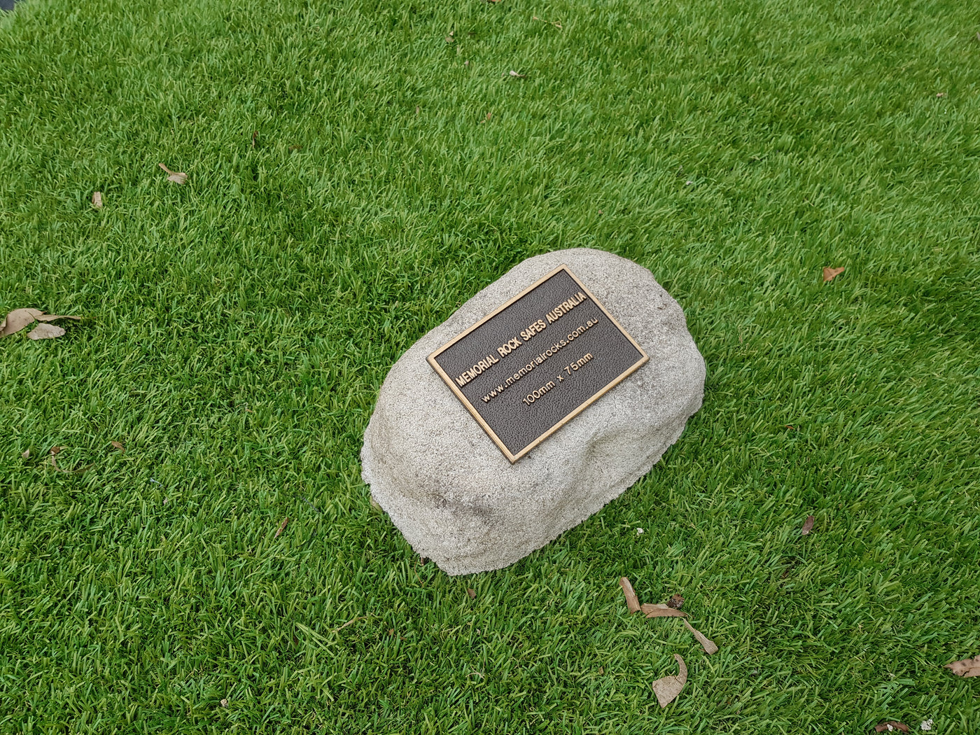 Memorial Rock Urns are a loving practical alternative for the safe keeping of a loved one's ashes. This Memorial Rock Urn has a small internal sealed container for partial ash interment. This Partial Ash Urn Memorial rock has an incorporated flat space for a industry standard bronze plaque 80 mm x 40mm x4.5mm or a 150mm x 100mm x 4.5 mm hear...