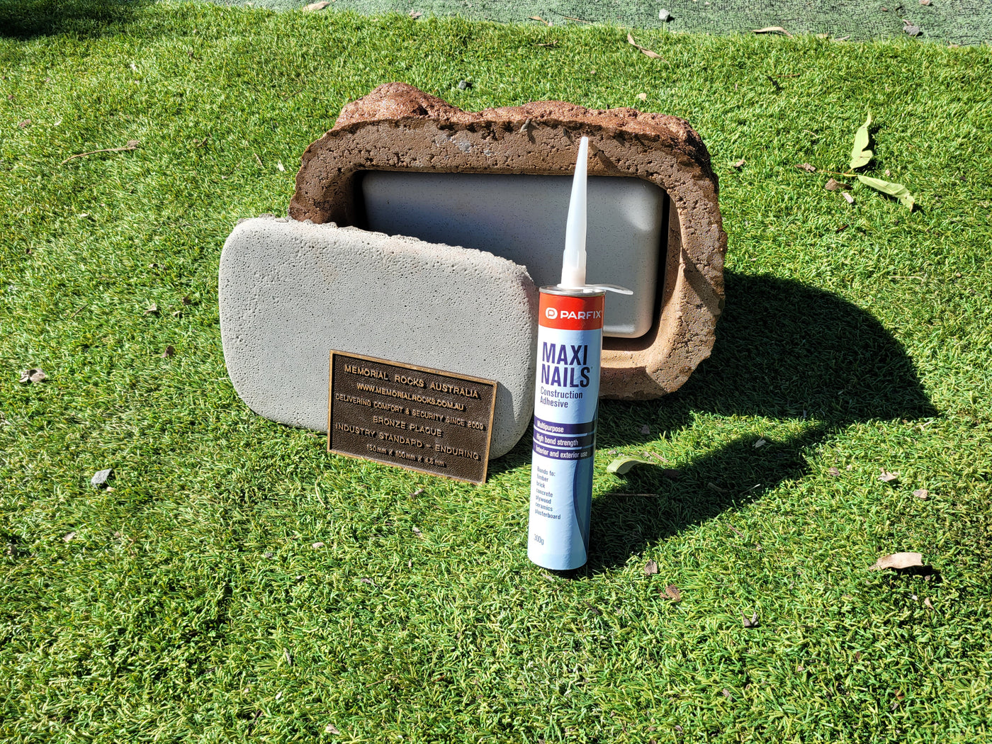 Lightweight (approx. 12 kg) Memorial Rock/Stone/Urn with a sealable internal cavity for the safe-keeping of a loved one's ashes. Holds one standard Australian sized ash container. (250mm x 150mm x 120mm)
